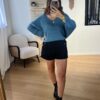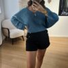 Le pull LEONORA bleu canard est ample et confortable, tricoté dans une maille douce et épaisse.