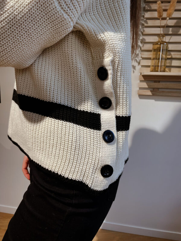 Découvrez notre pull rayé blanc LILOU. Véritable coup de cœur pour ce pull tout doux, ultra cosy, et très chic. Ses rayures apportent un côté simple mais élégant à la fois !