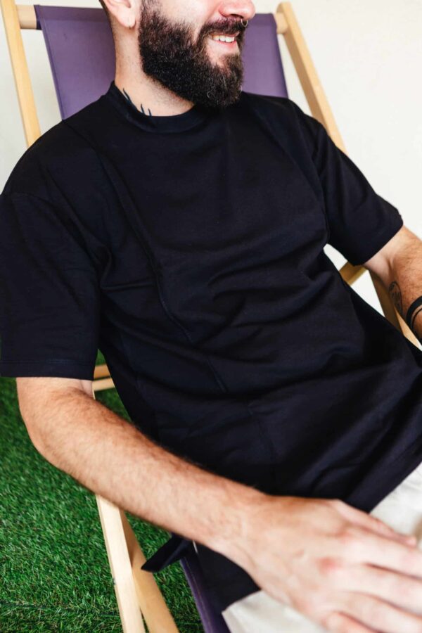 Ce t-shirt ARON noir, un incontournable de la garde robe masculine. Il s’accorde avec tous vos bas que ce soit short ou pantalon !